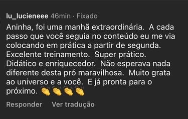 📣 A data da live tira-dúvidas, será divulgada dentro da plataforma, para você revisar tudo o que aprendeu e sair pronta para aplicar na sua vida e/ou negócios.